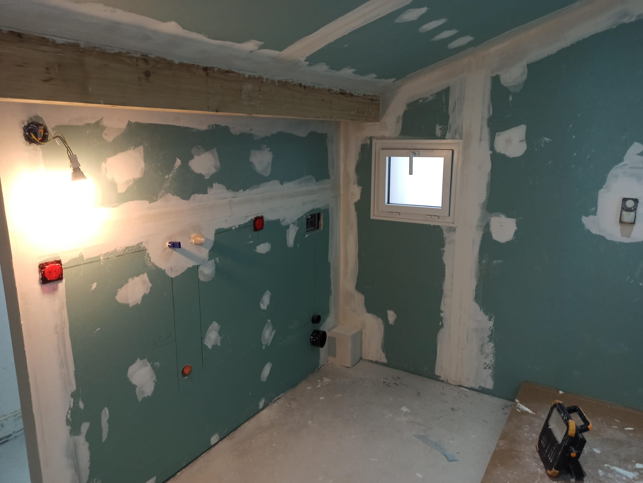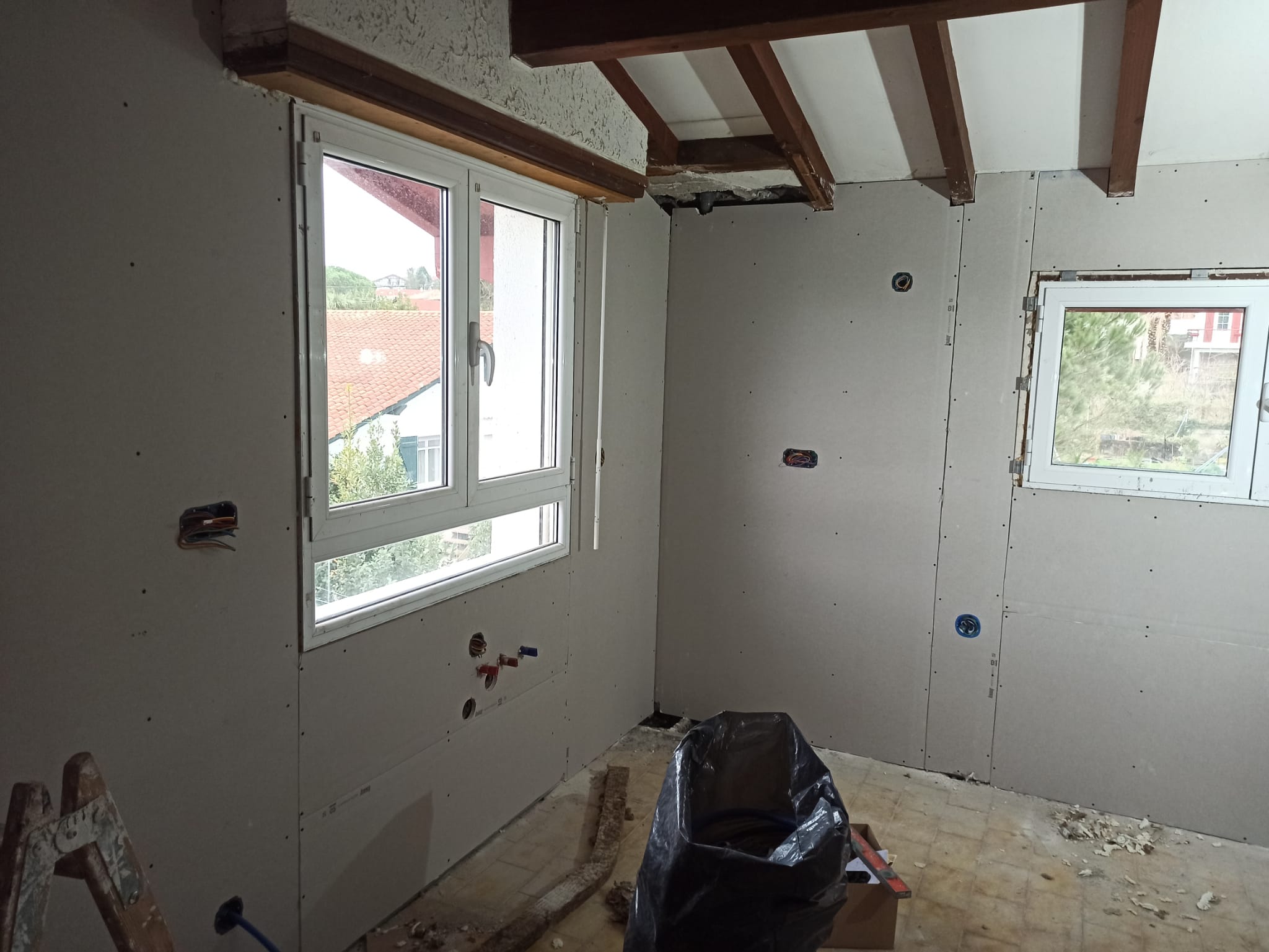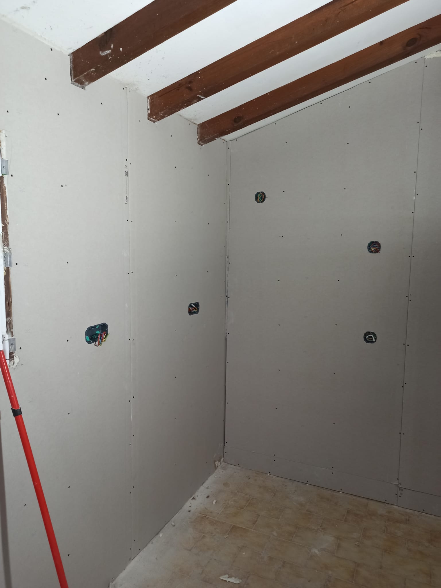 Chantier situé en Lozère (48) non loin de Massegros au nord de Séverac le Château. Rénovation complète d’une résidence secondaire (maison de campagne). Travaux complet de second œuvre : électricité, cloisonnage, isolation, carrelage, faïence, peinture, menuiserie, pose à galandage, habillage de la tremis.