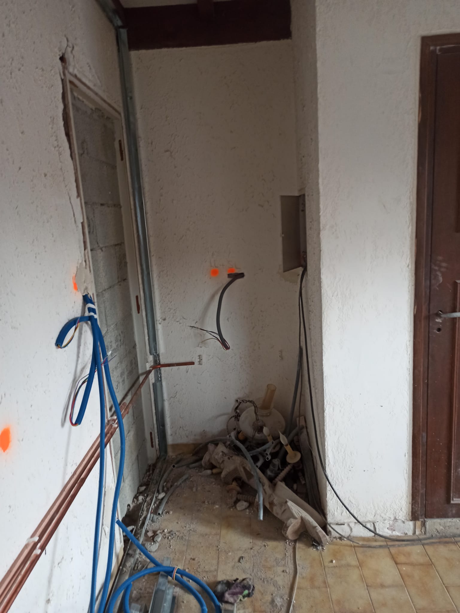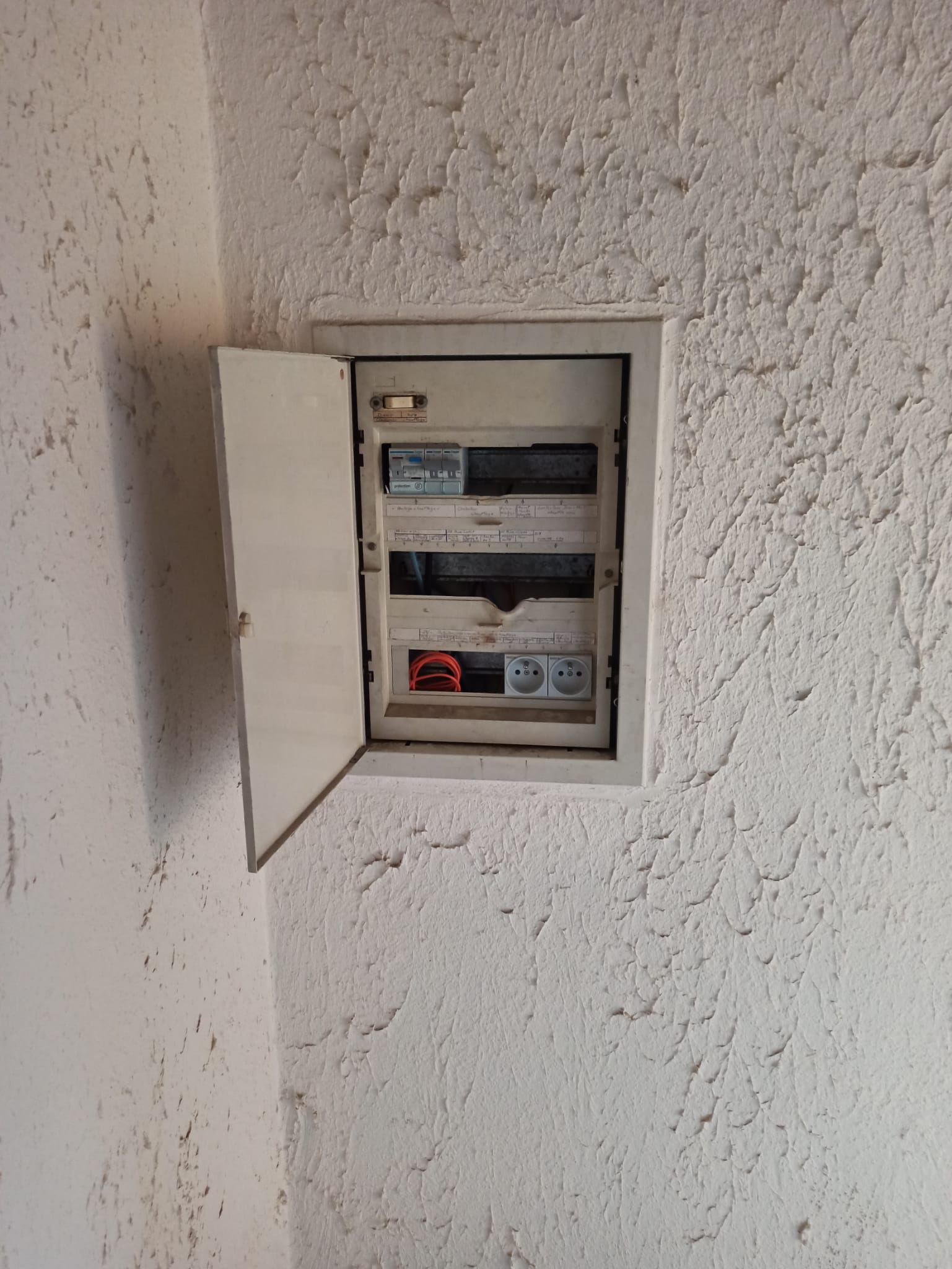 Chantier situé à Cantepau, rue Général Desaix à Albi. Rénovation et mise en conformité d’un tableau électrique et d’une installation électrique monophasée. Cuisine, séjour, garage, avec réalisations de saignées, rebouchées au plâtre et enduits.