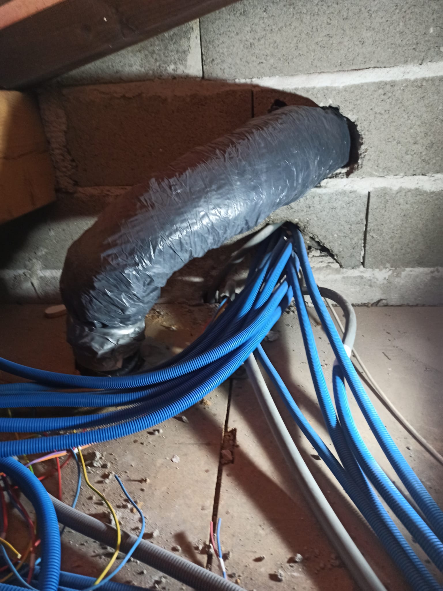 Rénovation électrique sur Albi à la Renaudié. Rénovation électrique totale en encastré et en goulotte PVC Legrand. Installation VMC simple flux hydro-réglable incluant les gaines isolées dans les combles en utilisant l’ancien conduit de cheminée condamnée.
